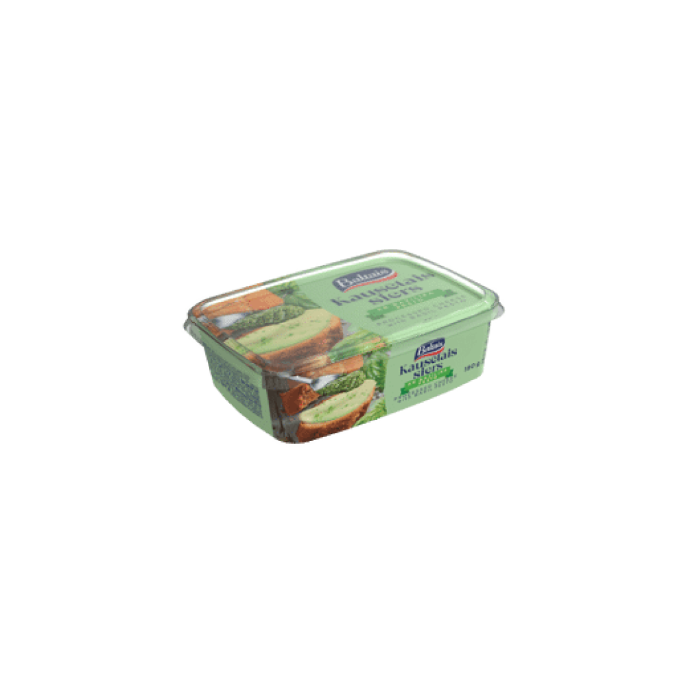 SIERS 35%, ūdens, SVIESTS, bazilika pesto 7% (baziliks 20%, rukola, ķiploki, sāls, saulespuķu sēklas, olīveļļa, skābuma regulētājs (pienskābe), cukurs, dabīgais aromatizētājs, modificētā cieta, vīna etiķis, biezinātājs (guāra sevķi)), VĀJPIENA pulveris, emuļģējošie sāļi (polifosfāts, difosfāts).