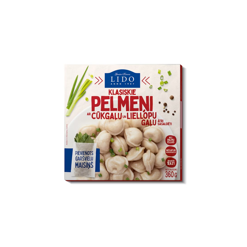 Pelmeņi Lido klasiskie, ar cūkgaļu un liellopa gaļu 360g