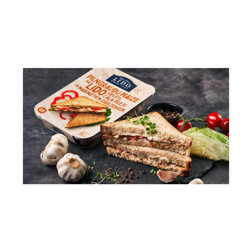 Pilngraudu maize ar Lido grilētu cāļa fileju un marinētiem dārzeņiem (195g)
